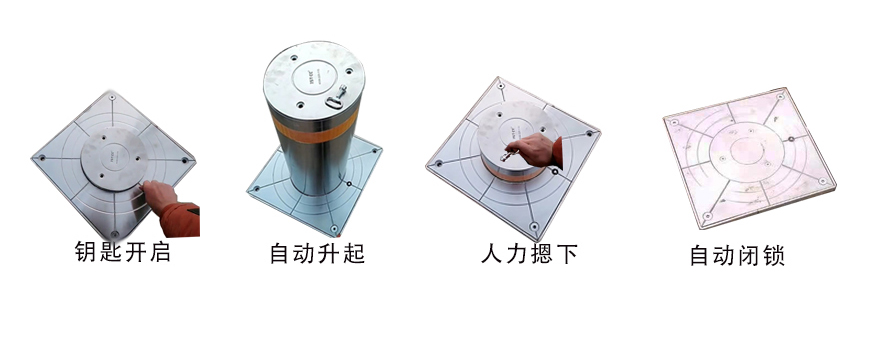 半自動升降柱又稱為手動升降柱。顧名思義需要人工手動去操作完成路樁的升降。但是它的優點在于無需通電,